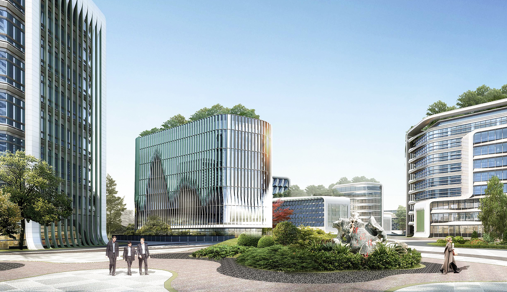 整個(gè)園區(qū)內(nèi),散落著五個(gè)獨(dú)特的建筑單體,分別以不同的顏色代表五大洲建筑形象,與五環(huán)顏色相匹配。象征著院士們來自于五湖四海,匯聚在院士港這個(gè)港灣。