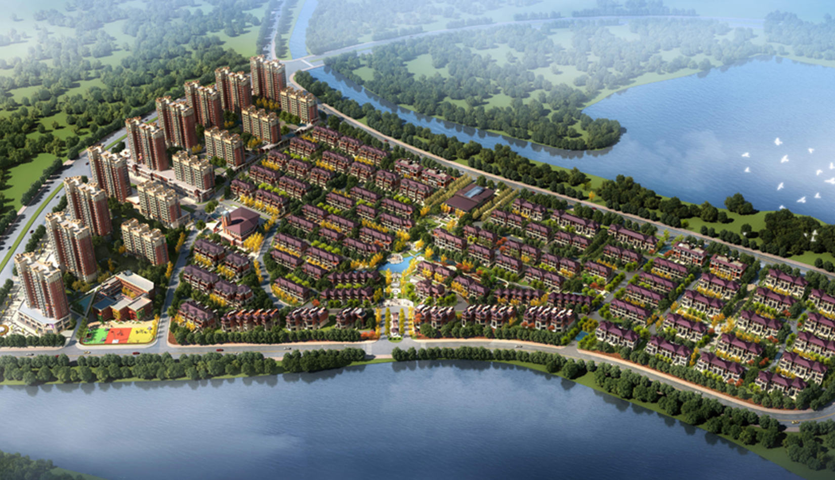 空中俯瞰, “一軸、一帶、三組團”構(gòu)成了一道靚麗的風景線。軸線自北向南貫穿公園綠地和沿河景觀,景觀帶則自西向東橫穿地塊,構(gòu)成基本空間骨架的同時,在小區(qū)中心交匯成