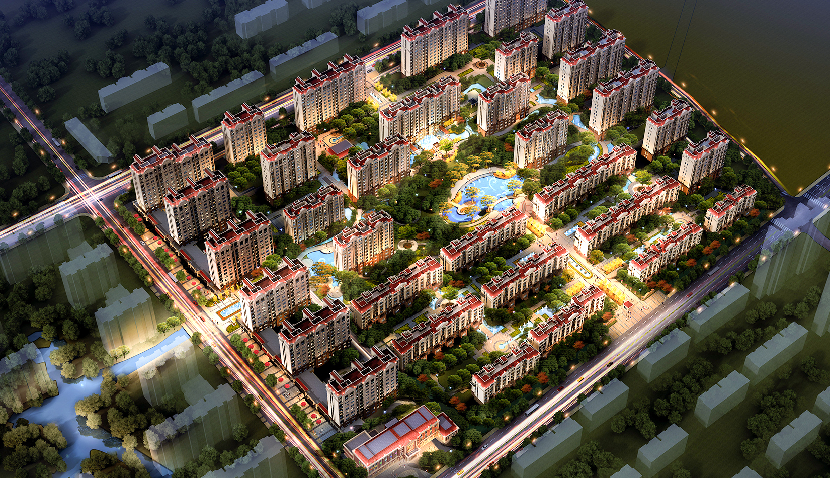 該項(xiàng)目設(shè)計(jì)以聚核、溝通、布局、點(diǎn)睛為規(guī)劃理念,打造一個(gè)高品質(zhì)水景花園社區(qū)。
