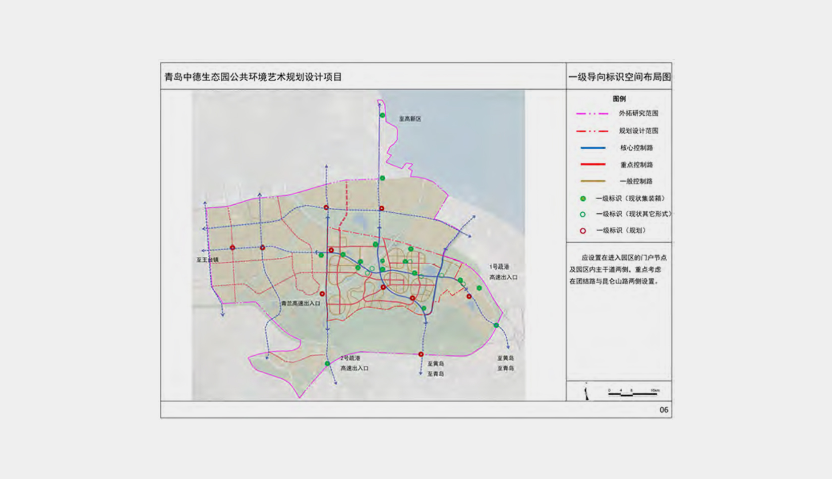 本規(guī)劃為導(dǎo)則編制,將導(dǎo)向標(biāo)識(shí)系統(tǒng)、街具系統(tǒng)和雕塑系統(tǒng)作為公共環(huán)境藝術(shù)的