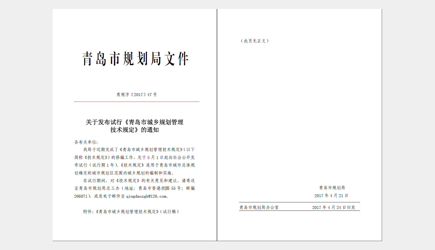 • Revision of The Technical Provisions on Urban and Rural Planning administration of Qingdao
